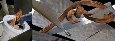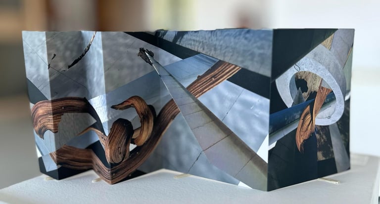 This body of work is part of a larger project where I attempt to inspect urban structures in spaces that evoke a sense of rupture in the ordered urban design. The project is a site-specific response to an isolated urban space under a flyover in the town of Ghaziabad. In this space the relationship between the natural and artificial elements creates its own order. Reflecting through the visual field-notes made while regularly visiting this site, I have been creating abstract imagery in sequence that has materialised into these forms.